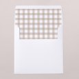 Der elegante Kraftpapierhintergrund der Einladungskarte Glückwunsch ist mit einem schlichten weißen Kreuz verziert, das die bevorstehende Kommunionsfeier symbolisiert. Die Karte kann mit einem schönen Foto von Ihrem Kind gestaltet werden, so dass die Einladung noch persönlicher wird.