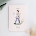 Die Kommunionkarte Kleiner Pilger zeigt einen Jungen mit zuversichtlichem Blick, bereit ist für die Heilige Erstkommunion. Die symbolische Taube begleitet ihn auf seinem Weg. Die leuchtenden Blumen in Pastellfarben machen diese Einladungskarte ideal für eine Feier im Frühling.