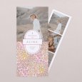 Das besondere Format dieser Einladungskarte wird Ihre Liebsten begeistern! Dieses Modell besteht aus einer hochformatigen Klappkarte und einem herausnehmbaren Fotostreifen, der als Andenken aufbewahrt werden kann, an den Kühlschrank gepinnt oder als Lesezeichen benutzt werden kann.