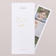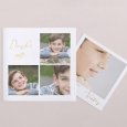 Diese Danksagung hat es in sich: die Klappkarte im Hochformat beinhaltet einen Fotostreifen mit Platz für 3 Ihrer schönsten Kommunionsfotos. Der Streifen kann als Andenken in der Karte aufbewahrt werden, aber auch herausgenommen und an den Kühlschrank gepinnt oder als Lesezeichen genutzt werden.