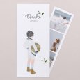 Diese Danksagung hat es in sich: die Klappkarte im Hochformat beinhaltet einen Fotostreifen mit Platz für 3 Ihrer schönsten Kommunionsfotos. Der Streifen kann als Andenken in der Karte aufbewahrt werden, aber auch herausgenommen und an den Kühlschrank gepinnt oder als Lesezeichen genutzt werden.