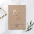 Die Einladungskarte Copper kombiniert den rustikalen Kraftpapier-Look mit romantischer Kupferveredelung und einem wunderschönen Schriftbild. Laden Sie Ihre Freunde und Familie mit dieser Karte zu einem unvergesslichen Hochzeitsfest ein.