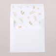Diese Hochzeitseinladung ist vom Greenery Trend inspiriert und verbindet üppige Blüten und Blätter mit edlem Gold. Die Einladung betört durch eine Kombination aus Natürlichkeit und Eleganz. Feine goldene Blättchen zieren den schlichten Rahmen. Besonders schön: Ein kleines Blatt-Element im Inneren der Karte als Ornament schafft ein beeindruckendes Gesamtbild. Für eine elegante Frühlingshochzeit oder eine graziöse Hochzeitsfeier im Sommer.