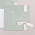 In sanftem Mintgrün gehalten, zeichnet die Hochzeitseinladung Green Romance in wenigen Strichen das Bild zweier Verlobter, die gemeinsam in ein neues Kapitel aufbrechen. Romantisch und poetisch erzählt diese Einladung auf die schönste Weise von Ihrer bevorstehenden Hochzeit.