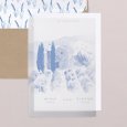 Poetisch wird der Süden auf der Hochzeitseinladung Rosemary dargestellt. Endlose Felder, Zypressen und ein typisches Steinhaus sind in Aquarellfarben auf dieser Vorlage zu sehen. Perfekt, um eine sommerliche Feier an einem charmanten Ort anzukündigen.