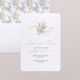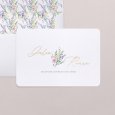 Eine zarte Aquarellblumen-Bouquet ziert die Hochzeitseinladung My sweet bouquet. Die Initialen und Vornamen des Brautpaares erscheinen in goldenen Buchstaben auf diesem poetischen Design – perfekt, um eine elegante Hochzeit auf dem Land anzukündigen.