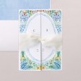 Ein wunderschönes Aquarellkunstwerk schmückt die Hochzeitseinladung Blue garden. Feine Pflanzenbouquets, Blumentöpfe und bunte Blumen entfalten sich inmitten eines idyllischen Gartens und verleihen dieser Kreation einen poetischen Touch – eine Hommage an Ihre bevorstehende Feier.