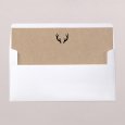 Bei dieser charaktervollen Einladung im unkonventionellen Trio-Format verschmelzen die Natürlichkeit des Kraftpapier-Looks mit schwarzer Tinte und kleinen Naturmotiven. Auf der mittleren Karte finden die Bilder des Brautpaares viel Platz - ein ganz persönliches Element für die Gäste. Das Design strahlt Warmherzigkeit und natürliche Sanftheit aus. Für ein Hochzeitsfest, bei dem das Wesentliche im Vordergrund steht.
