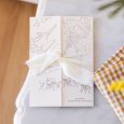 Einladung besteht aus einer Karte und einem feinen, illustrierten Transparentpapier.