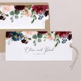 Sinnliche Blüten in schönen Rot- und Blautönen machen die Hochzeitseinladung Viktoria zu einem besonderem Blickfang. Laden Sie Ihre Freunde und Familie mit diesem Design zu einem romantischen Hochzeitsfest ein.