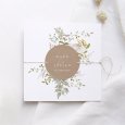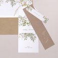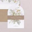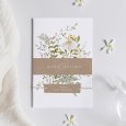 Ein Strauß aus Farnen, Gräsern und zarten Blumen ziert die Hochzeitseinladung Arpeggio. Kraftpapier und elegante Typografie vervollständigen diese von der Natur inspirierte Komposition, die perfekt zu einer Hochzeit mit natürlichem Thema passt.