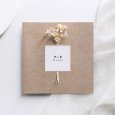 Die quadratische Klappkarte lässt sich individuell mit Ihrem Text gestalten. Dekorieren Sie die Karte mit zarten Trockenblumen, um Ihrer Botschaft extra Eleganz zu verleihen. Die Vorderseite der Karte ist zur Anbringung der Blüten vorgestanzt.