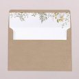 Ein Strauß aus Farnen, Gräsern und zarten Blumen ziert die Hochzeitseinladung Arpeggio. Kraftpapier und elegante Typografie vervollständigen diese von der Natur inspirierte Komposition, die perfekt zu einer Hochzeit mit natürlichem Thema passt.