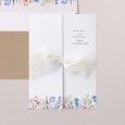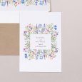 Die Hochzeitseinladung "Spring Wildery" zeigt zarte Sträuße von Wildblumen um die Namen des Brautpaares. Ein herrliches Aquarell in Boho-Farbtönen, perfekt, um Ihre farbenfrohe Hochzeit im Frühling oder Sommer zu verkünden.