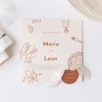 Diese Einladungskarte besteht aus einer quadratischen Klappkarte mit Einstecklasche, einem Einleger und einem Anhänger. Wir empfehlen, den Anhänger mit einem schönen Band Ihrer Wahl an der vorgestanzten Karte zu befestigen (Band als Accessoire bestellbar).