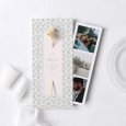 Diese Hochzeitseinladung besteht aus einer Klappkarte im Hochformat und einem herausnehmbaren Fotostreifen mit Platz für 3 Ihrer schönsten Fotos. Der Streifen kann als Erinnerung an den Kühlschrank gepinnt oder als Lesezeichen genutzt werden.