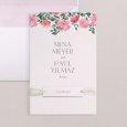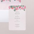 Die Hochzeitseinladung Roses and red zeigt ein prächtiges Blumenbouquet in Rosatönen, das die Vornamen des Brautpaares krönt. Elegant in Aquarell gezeichnet, kündigt dieses Design Ihre romantische Verbindung an.