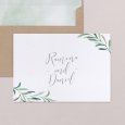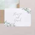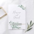Die Einladung Provence bezaubert mit Olivenblättern im Aquarellstil auf reinem weißen Papier. Für ein natürliches und elegantes Hochzeitsfest mit einem Hauch von mediterranem Flair.
