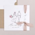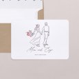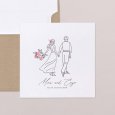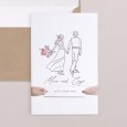 Hand in Hand und mit liebevollen Details gezeichnet, zeigt die Hochzeitseinladung Ritournelle das Brautpaar in einer zarten, poetischen Darstellung. Florale Akzente und ein natürlicher Stil machen diese Karte perfekt für eine entspannte, elegante Boho-Hochzeit.