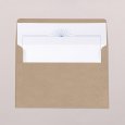 Hochzeitseinladung zum Aufklappen mit Fensterausschnitt und herausnehmbarer Einlegekarte. Die Klappkarte und der Einleger sind beidseitig personalisierbar.