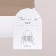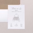 Hochzeitseinladung zum Aufklappen mit Fensterausschnitt und herausnehmbarer Einlegekarte. Die Klappkarte und der Einleger sind beidseitig personalisierbar.