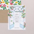 Auf der Hochzeitseinladung Lamartine enthüllt eine wunderschöne Glastür mit geschwungenen Formen die wichtigsten Details Ihres schönen Tages. Ein Modell mit zarten, blumigen und kräftigen Aquarellen für eine durch und durch romantische Verbindung.