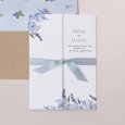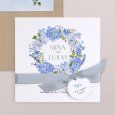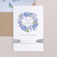 Das beliebte Blumendesign wird mit einem modernen Twist auf der Hochzeitseinladung Hortense neu interpretiert. Ein wunderschöner Kranz aus blauen Blumen schmückt diese Kreation, die perfekt ist, um den Ton für eine stilvolle und farbenfrohe Landhochzeit zu setzen.