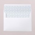 Die Einladungskarte im Hochformat besteht aus einem Mittelteil und zwei einklappbaren Seitenteilen. Im geöffneten Zustand enthüllen sie die wichtigsten Details Ihres schönen Tages. Sie können die Karte mit einem hübschen Band (nach Wahl und gegen Aufpreis) verschließen.