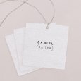 Diese Namenskärtchen mit Öse bilden mit den passenden Menükarten und den Tischnummern das i-Tüpfelchen Ihrer Tischdeko.