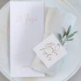 Tipp: Befestigen Sie die Tischkarten mit einem hübschen Band an den Servietten am Sitzplatz Ihrer Hochzeitsgäste.