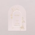 Mit seinem eleganten Bogenschnitt ist dieses Hochzeitsmenü, passend zu Ihren Einladungskarten, eine wunderbare Ergänzung Ihrer Tischdekoration. Präsentieren Sie es auf einem eleganten Kartenhalter aus Holz (optional erhältlich), legen Sie eine Karte auf jeden Teller oder schmücken Sie sie mit einer hübschen Schleife...