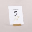 Tipp: Um Ihre Tischdeko harmonisch zu gestalten, nutzen Sie einen schönen Halter für Ihre Tischnummern oder platzieren Sie sie in der Blumendeko in der Tischmitte.