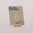 Passend zur Einladungskarte wird diese Tischnummer Ihre Dekoration am großen Tag perfekt ergänzen. Präsentieren Sie sie auf einem eleganten Kartenhalter aus Holz (optional erhältlich), binden Sie sie mit einer Schnur um eine mit Trockenblumen gefüllte Glasvase... lassen Sie Ihrer Fantasie freien Lauf!
