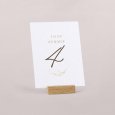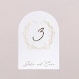 Passend zur Einladungskarte wird diese Tischnummer Ihre Dekoration am großen Tag perfekt ergänzen. Präsentieren Sie sie auf einem eleganten Kartenhalter aus Holz (optional erhältlich), binden Sie sie mit einer Schnur um eine mit Trockenblumen gefüllte Glasvase... lassen Sie Ihrer Fantasie freien Lauf!