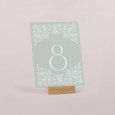 Passend zur Einladungskarte wird diese Tischnummer Ihre Dekoration am großen Tag perfekt ergänzen. Präsentieren Sie sie auf einem eleganten Kartenhalter aus Holz (optional erhältlich), binden Sie sie mit einer Schnur um eine mit Trockenblumen gefüllte Glasvase... lassen Sie Ihrer Fantasie freien Lauf!