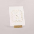 Passend zur Einladungskarte wird diese Tischnummer Ihre Dekoration am großen Tag perfekt ergänzen. Präsentieren Sie sie auf einem eleganten Kartenhalter aus Holz (optional erhältlich), binden Sie sie mit einer Schnur um eine mit Trockenblumen gefüllte Glasvase... lassen Sie Ihrer Fantasie freien Lauf!