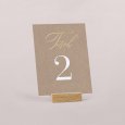 Passend zur Einladungskarte wird diese Tischnummer Ihre Dekoration am großen Tag perfekt ergänzen. Präsentieren Sie sie auf einem eleganten Kartenhalter aus Holz (optional erhältlich), binden Sie sie mit einer Schnur um eine mit Trockenblumen gefüllte Glasvase... lassen Sie Ihrer Fantasie freien Lauf!