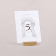 Passend zur Einladungskarte wird diese Tischnummer Ihre Dekoration am großen Tag perfekt ergänzen. Präsentieren Sie sie auf einem eleganten Kartenhalter aus Holz (optional erhältlich), binden Sie sie mit einer Schnur um eine mit Trockenblumen gefüllte Glasvase... lassen Sie Ihrer Fantasie freien Lauf!