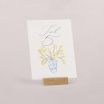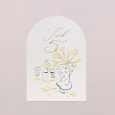Passend zur Einladungskarte wird diese Tischnummer Ihre Dekoration am großen Tag perfekt ergänzen. Präsentieren Sie sie auf einem eleganten Kartenhalter aus Holz (optional erhältlich), binden Sie sie mit einer Schnur um eine mit Trockenblumen gefüllte Glasvase... lassen Sie Ihrer Fantasie freien Lauf!