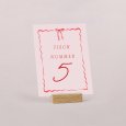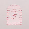 Passend zur Einladungskarte wird diese Tischnummer Ihre Dekoration am großen Tag perfekt ergänzen. Präsentieren Sie sie auf einem eleganten Kartenhalter aus Holz (optional erhältlich), binden Sie sie mit einer Schnur um eine mit Trockenblumen gefüllte Glasvase... lassen Sie Ihrer Fantasie freien Lauf!