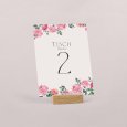 Passend zur Einladungskarte wird diese Tischnummer Ihre Dekoration am großen Tag perfekt ergänzen. Präsentieren Sie sie auf einem eleganten Kartenhalter aus Holz (optional erhältlich), binden Sie sie mit einer Schnur um eine mit Trockenblumen gefüllte Glasvase... lassen Sie Ihrer Fantasie freien Lauf!