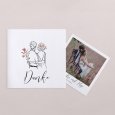 Bedanken Sie sich bei Ihren Angehörigen, die bei Ihrer Hochzeit anwesend waren, mit einer schönen, persönlichen Karte. Diese Dankeskarte wird von einem Erinnerungsgeschenk begleitet: ein Polaroid (nicht magnetisch), das in die Karte gesteckt wird und das sie aufbewahren, aufhängen oder als Lesezeichen verwenden können... als Erinnerung an dieses wunderschöne Ereignis.