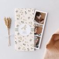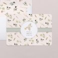 Das Herzstück der Einladungskarte Nathaniel ist die traditionelle weiße Taube, die voller Freude und mit einer Hostie im Schnabel die Taufe Ihres Kindes verkündet. Das Design ist mit Olivenzweigen geschmückt und wird die Vorfreude auf eine schöne Feier bei Ihren Gästen wecken.