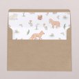 Die liebevoll illustrierten kleinen Waldtiere auf der Taufkarte Süße Freunde II Überbringen die schöne Botschaft von der bevorstehenden Taufe. Der Name Ihres Kindes und das Datum der Veranstaltung stehen in dem blumigen Design im Mittelpunkt aller Aufmerksamkeit.