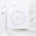 Auf der Taufeinladung Violetta ziert ein hübscher Blumenkranz die Einladung zur Taufe Ihres Kindes. Ein elegantes und zeitloses Modell, das Ihre Gäste begeistern wird.