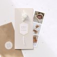 Diese Taufeinladung besteht aus einer in der Mitte gefalteten Karte und einem Fotostreifen, der in die Klappkarte eingelegt werden kann. Zwei Perforationen auf der Vorderseite bieten Platz für einen Trockenblumenzweig (zusätzlich wählbar). Damit Ihre Empfänger die ganze Pracht der Trockenblumen auf Ihren Einladungen genießen können, empfehlen wir die Einladungen persönlich überreichen. Jede Trockenblume ist einzigartig. Daher können ihr Aussehen, ihre Größe und ihre Farbe leicht von der hier gezeigten Abbildung abweichen.