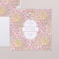 Auf der Taufkarte Allegria vereinen sich zarte Pastellblumen in Rosa, Orange und Gelb. Eine fröhlich-bunte Komposition, die ideal ist, um die Taufe Ihrer Tochter oder Ihres Sohnes im Frühling bekannt zu geben.
