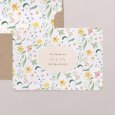 Frisch und frühlingshaft präsentiert sich die Taufkarte Lilly Rose mit Narzissen, Veilchen, Löwenzahn und weiteren bunten Blumen. Verziert mit kleinen Bienen ist diese Karte die perfekte Wahl für eine Taufe im Frühling oder Sommer.