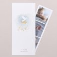 Diese Danksagung hat es in sich: die Klappkarte im Hochformat beinhaltet einen Fotostreifen mit Platz für 3 Ihrer schönsten Fotos von der Taufe. Der Streifen kann als Andenken in der Karte aufbewahrt werden, aber auch herausgenommen und an den Kühlschrank gepinnt oder als Lesezeichen genutzt werden.