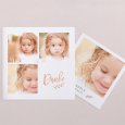 Diese Danksagung hat es in sich: die Klappkarte im Hochformat beinhaltet einen Fotostreifen mit Platz für 3 Ihrer schönsten Fotos von der Taufe. Der Streifen kann als Andenken in der Karte aufbewahrt werden, aber auch herausgenommen und an den Kühlschrank gepinnt oder als Lesezeichen genutzt werden.